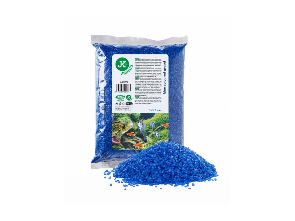 Barevný štěrk do akvárií a terárií. Balení 0,5 kg. Frakce 1–1,5 mm. Barva: modrá. Voděodolný, vysoká barevná a chemická stálost.
