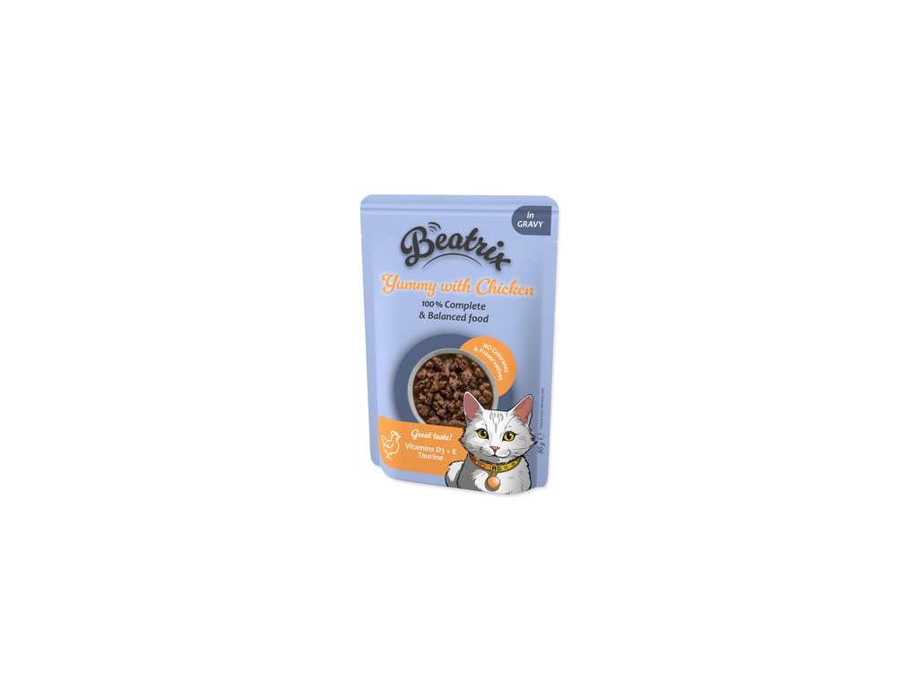 Složení: Maso a výrobky živočišného původu (91% ve filetkách*, z toho 10% kuřecí*), bílkovinné extrakty, vedlejší výrobky rostlinného původu (0,4% inulin), minerální látky, cukry. *Filetky obvykle tvoří 44% produktu. Analytické složky: Hrubý protein 8,5%, hrubý tuk 4,5%, hrubý popel 2%, hrubá vláknina 0,4%, vlhkost 82%. Doplňkové látky: Nutriční doplňkové látky v 1 kg: vitamín D3 160 m.j., vitamín E 100 mg, zinek (síran zinečnatý monohydrát) 10 mg, mangan (oxid manganatý) 2 mg, měď (síran měďnatý pentahydrát) 1,2 mg, jód (jodičnan vápenatý, bezvodý) 0,2 mg, taurin 520 mg, biotin 100 µg. m.j. = mezinárodní jednotky. Metabolizovatelná energie/100g: 82 kcal.