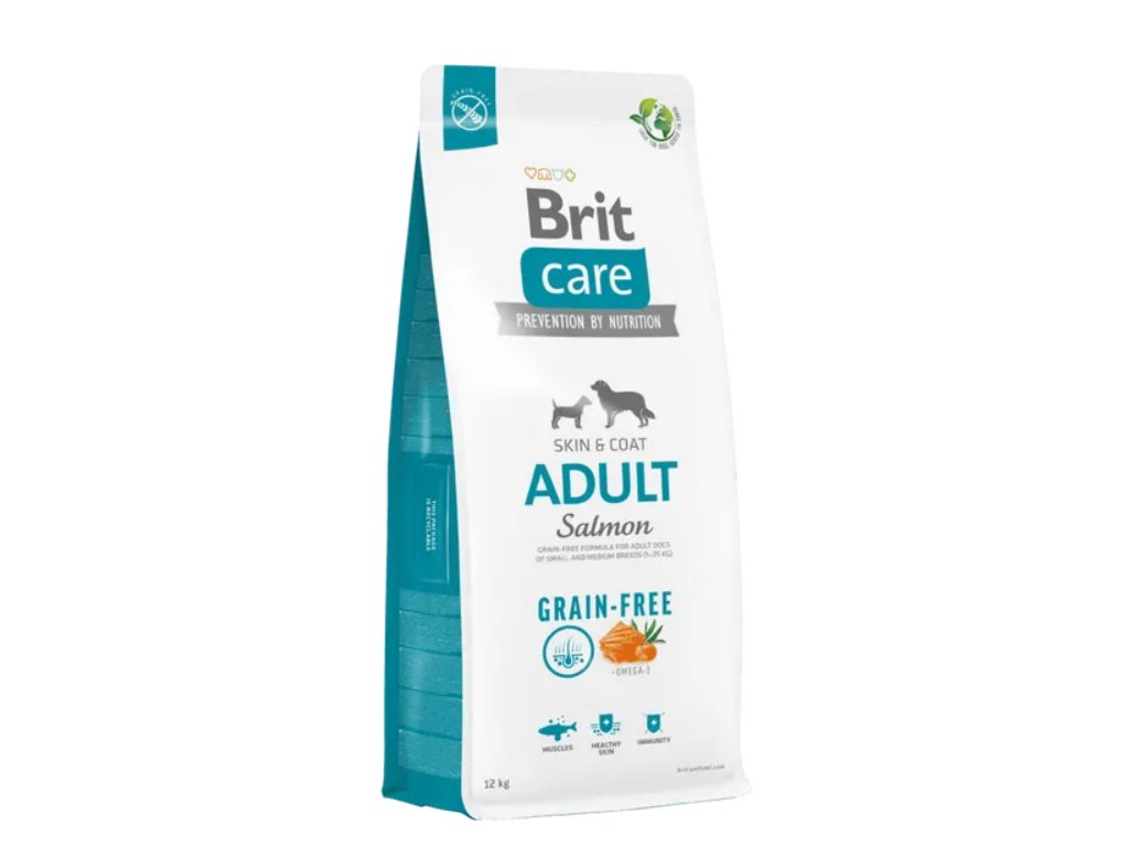 Brit Care Dog Grain-free Adult Salmon & Potatoes je kompletní bezobilné krmivo s lososem pro dospělé psy malých a středních plemen.