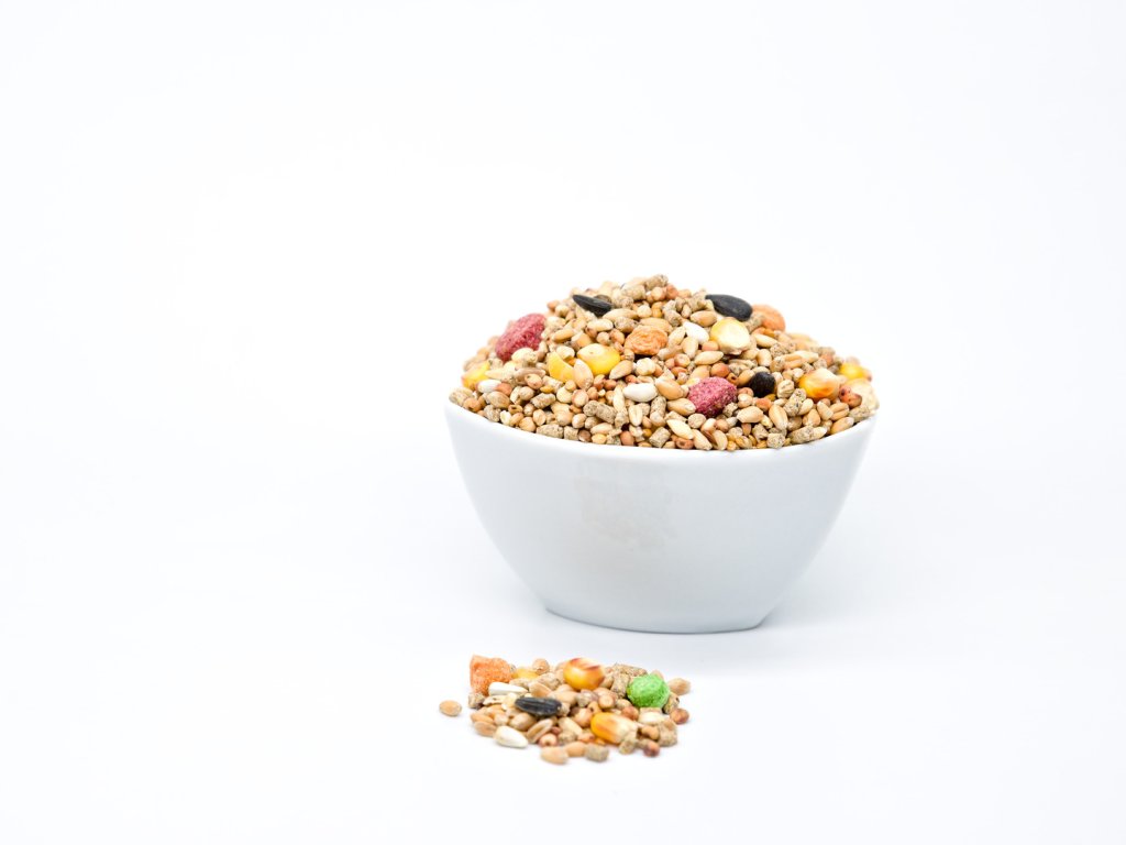 Kukuřičná krupice, granulát Vita Karm, pšenice extra tříděná, sójový šrot, ječmen extra krátký, světlice barvířská, slunečnice černá tříděná, čirok extra tříděný, proso žluté, zeleninový granulát.