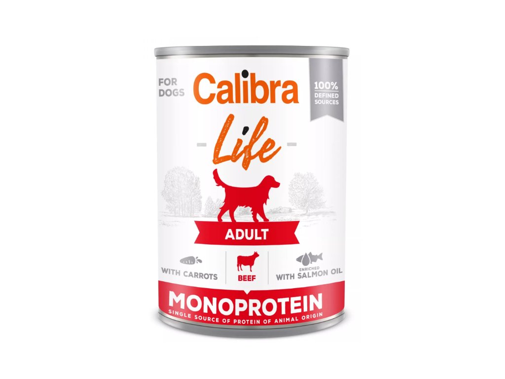 Calibra Dog Life Adult Beef with Carrots – receptura konzervy s hovězím a mrkví je kompletním krmivem, které je určené dospělým psům.