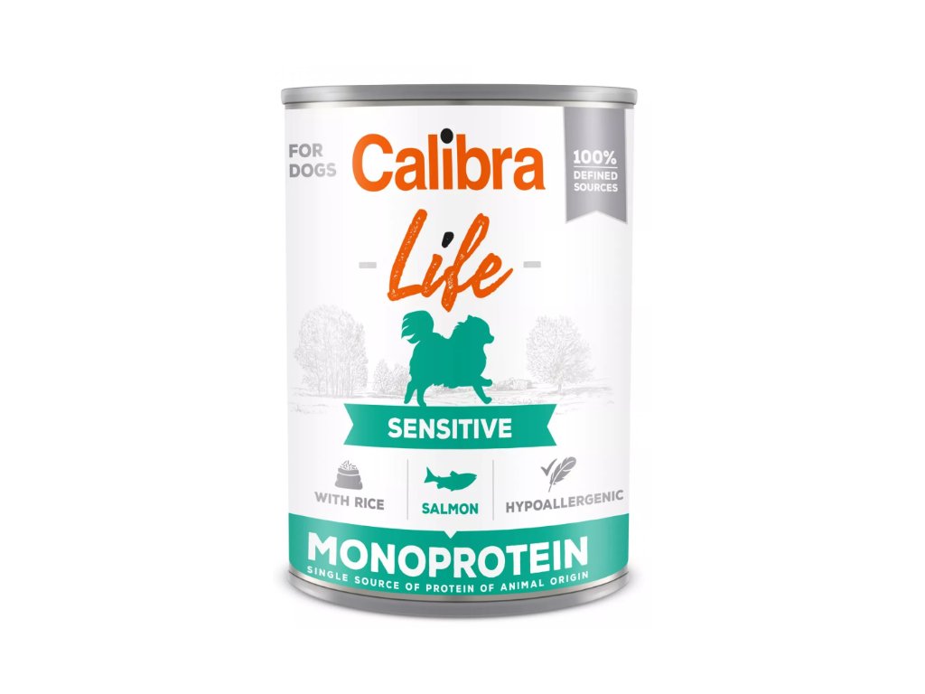 Calibra Dog Life Sensitive Salmon with Rice - receptura konzervy s lososem a rýží je kompletním krmivem, které je určené pro dospělé psy a vhodné i pro citlivé zažívání.