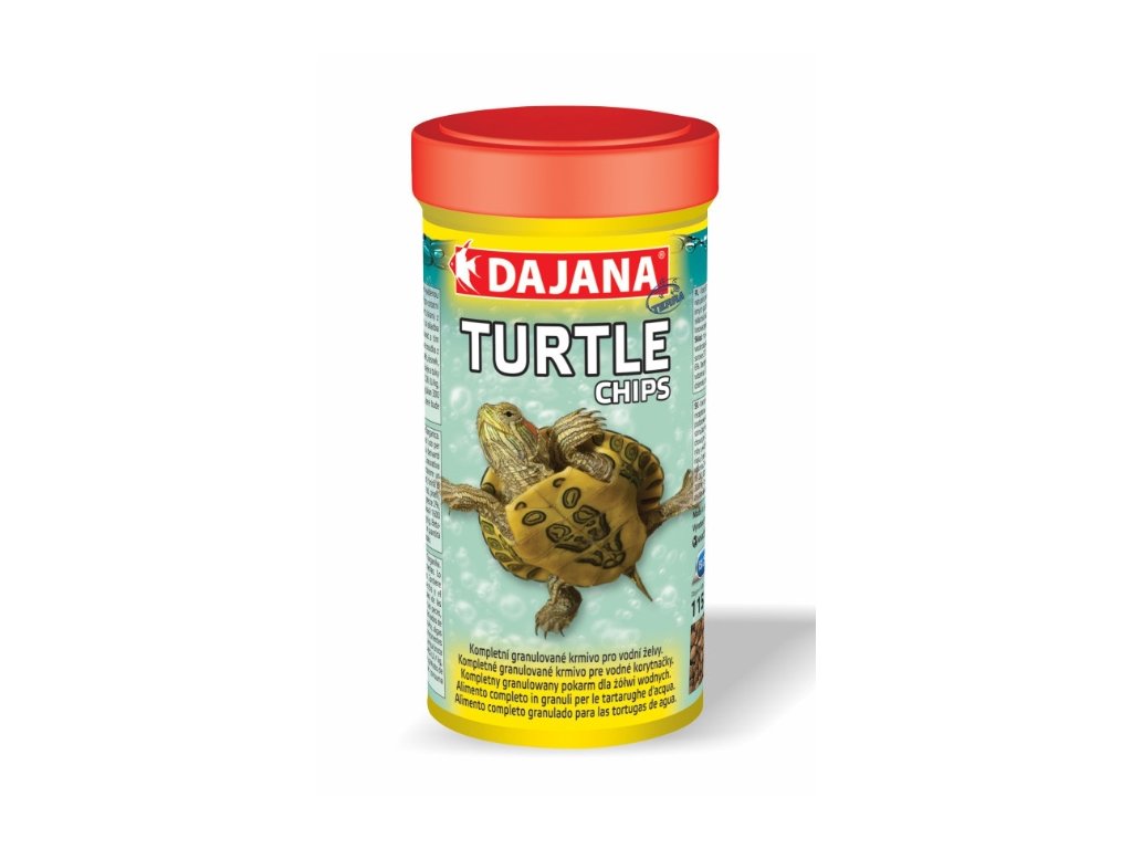 Kompletní plovoucí krmivo pro všechny druhy vodních želv. Plovoucí „pecky“ TURTLE CHIPS jsou jednoduše dostupné z hladiny a jsou velmi ochotně přijímány. Krevety, maso sledě a pivovarské kvasnice v tomto krmivu zajistí želvám potřebný přísun bílkovin, vitamínů a minerálů. Obsah zeolitu navíc pomáhá udržovat kvalitu vody vašeho želvária.