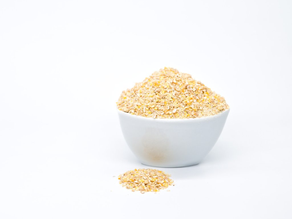 pšenice jemně mletá, kukuřičná krupice, mletý sójový šrot, hrubé ječné kroupy, jáhlové kroupy, bílkovinový mix pro kuřata, uhličitan vápenatý.
