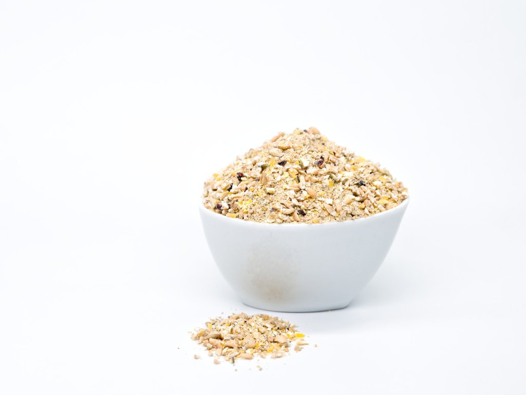 Pšenice hrubá, kukuřice hrubý šrot, vita krmné pelety, sójový šrot hrubý, mletý ječmen, uhličitan vápenatý, premix.