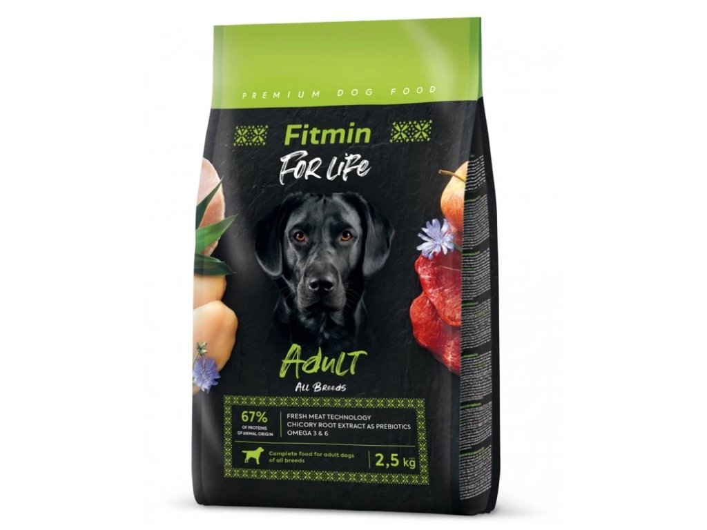 Adult je krmivo pro psy všech plemen z řady Fitmin For Life. Krmiva z řady Fitmin For Life byla vyvinuta tak, aby uspokojila potřeby psa jak podle jeho životního období, tak i podle toho, jak je veliký. Díky stejnému obsahu surovin můžete přecházet z jednoho typu krmiva na druhé bez nutnosti postupného přechodu a míchání krmiv. Vybírat můžete z variant určených pro štěňata, juniory velkých plemen, dospělé psy všech plemen, dospělé psy velkých a obřích plemen, seniory, psy malých plemen až po krmiva pro psy s nadváhou.