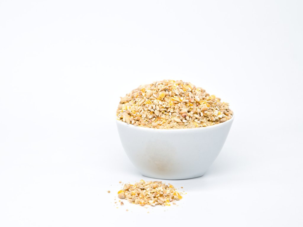 - Pšeničná krupice, kukuřičná krupice, sójový extrahovaný šrot, oves, uhličitan vápenatý, japonské proso, čirok.