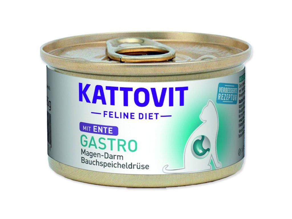 Když kočka potřebuje speciální péči, záleží na každém soustu. Kattovit Gastro s kachním je kompletní dietní krmivo, které pomáhá kompenzovat nedostatečné trávení, podporuje při exokrinní pankreatické insuficienci a přispívá ke zmírnění poruch vstřebávání ve střevě. Díky lehce stravitelné receptuře je vhodnou volbou pro každodenní krmení citlivých koček.