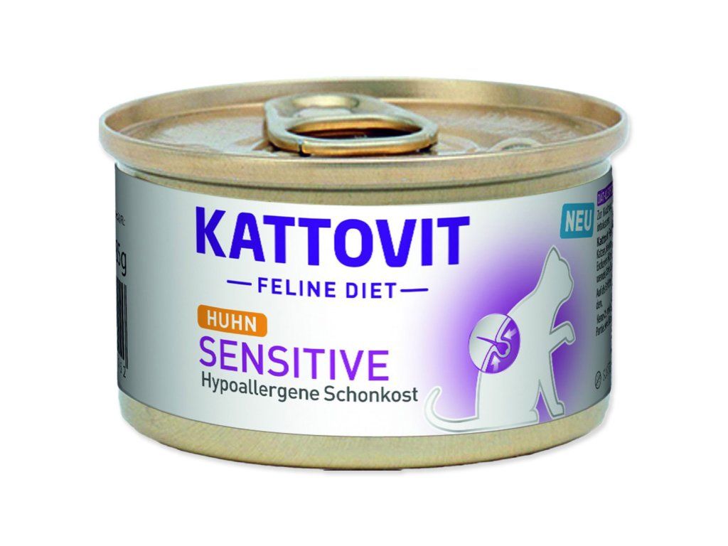 Když kočka potřebuje speciální péči, záleží na každém soustu. Kattovit Sensitive s kuřecím je kompletní dietní krmivo, které pomáhá snižovat příznaky nesnášenlivosti surovin a živin. Díky jednoduché receptuře je vhodnou volbou pro každodenní krmení citlivých koček.