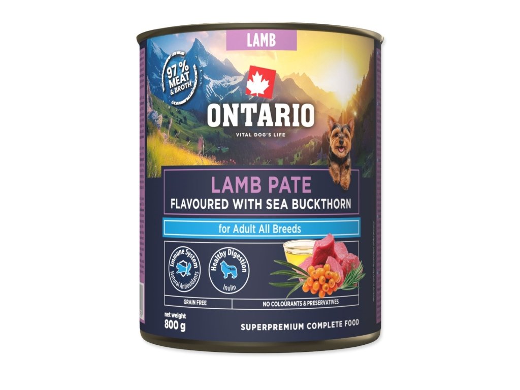 Konzerva Ontario Adult jehněčí pate s příchutí rakytníku 800g