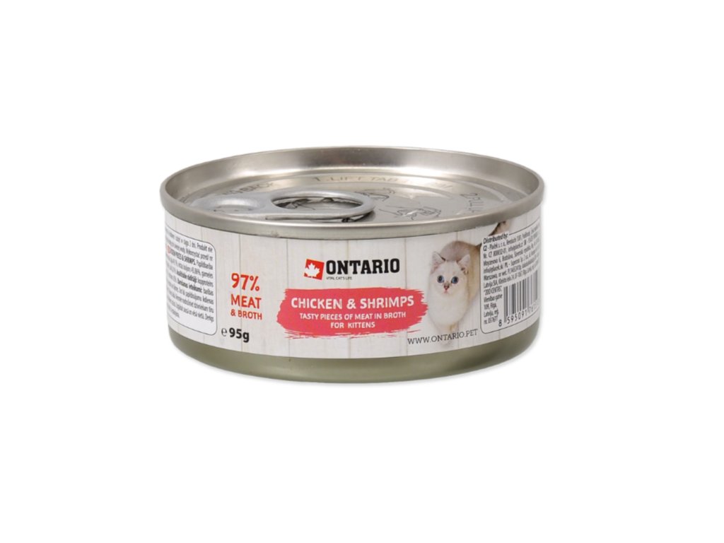 Konzerva Ontario Kitten kuřecí kousky s krevetami 95g