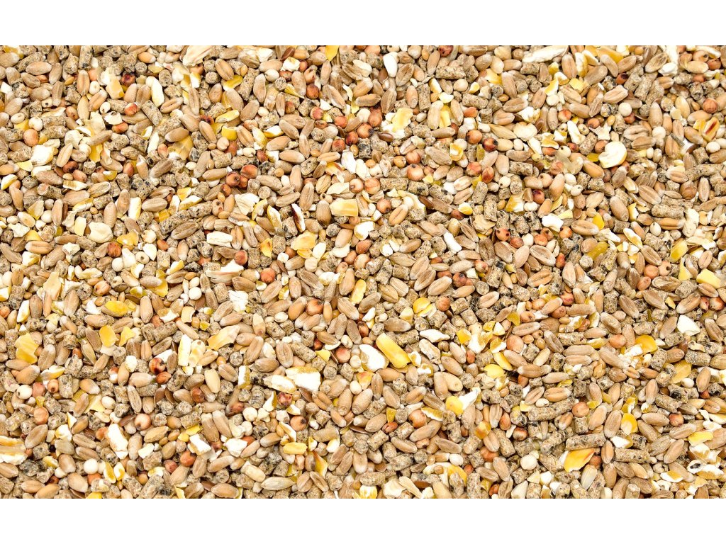 - Pšenice, Červený čirok, Mikrogranule uhličitanu vápenatého, Hrubě rozžvýkaná žlutá kukuřice, Vita krmné pelety.