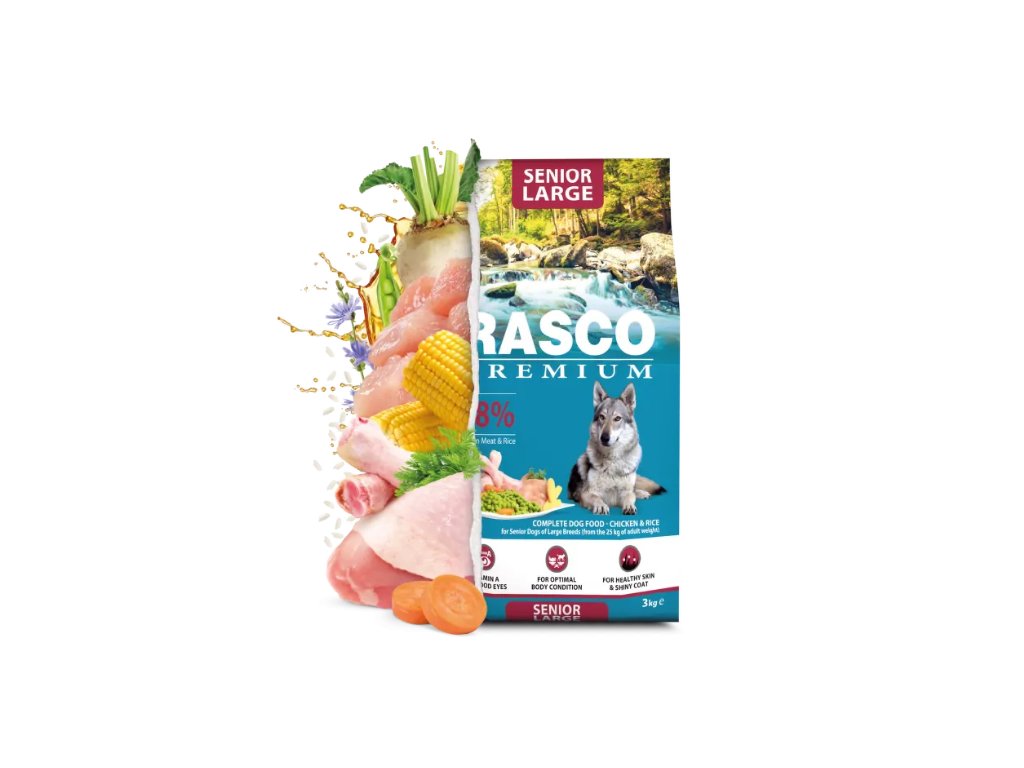 Chutná a lehce stravitelná receptura z pečlivě vybraných surovin a vyváženým složením pro optimální tělesný stav a zdravé stárnutí seniorů velkých a obřích plemen.