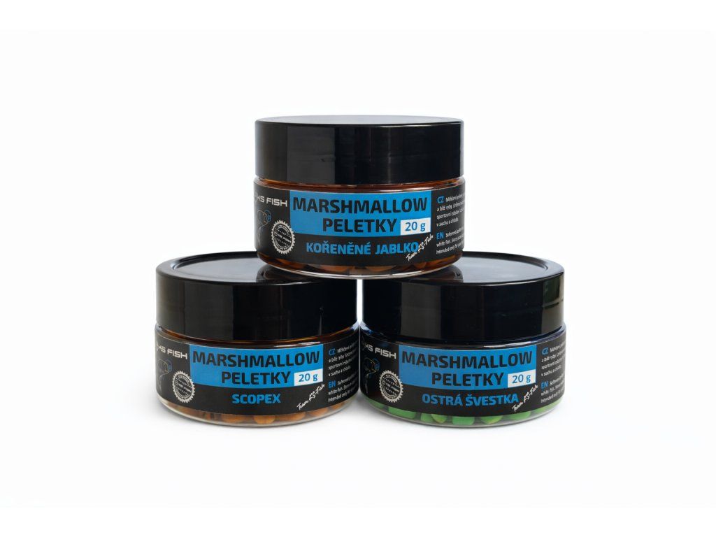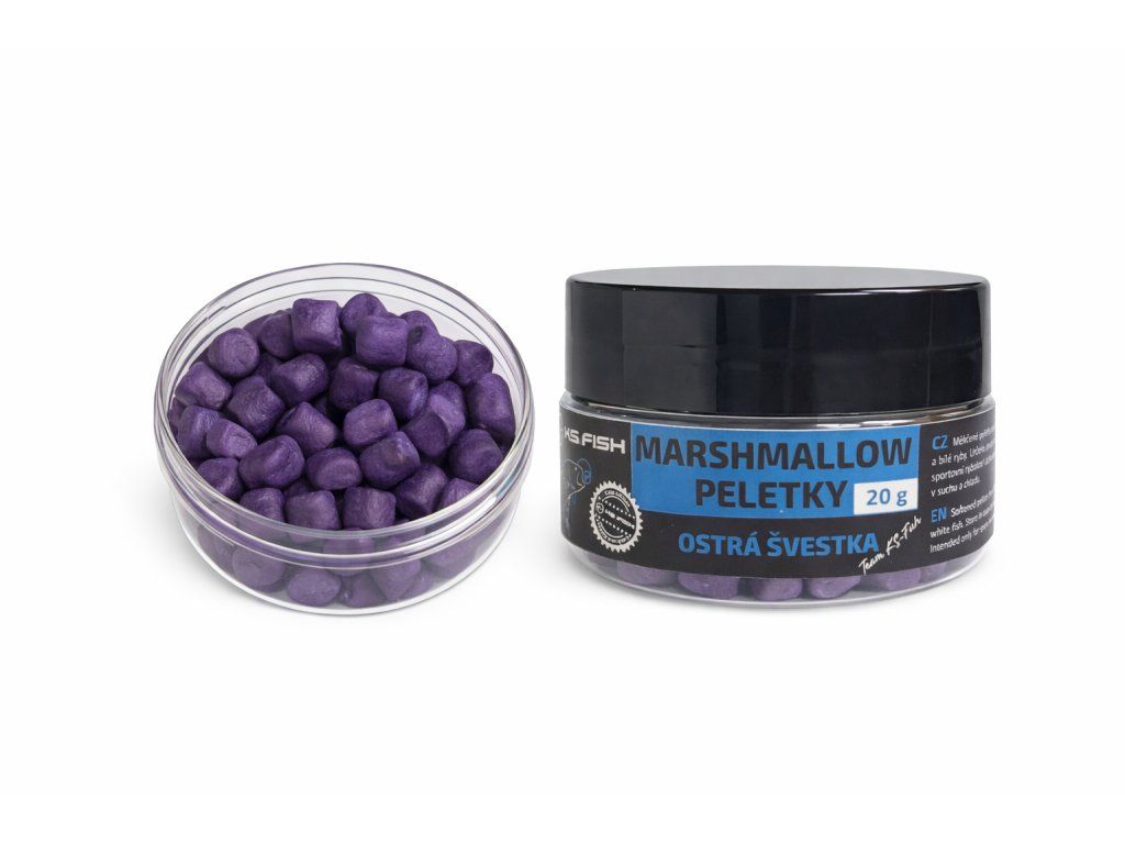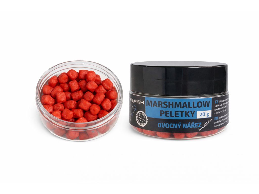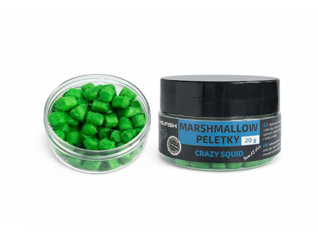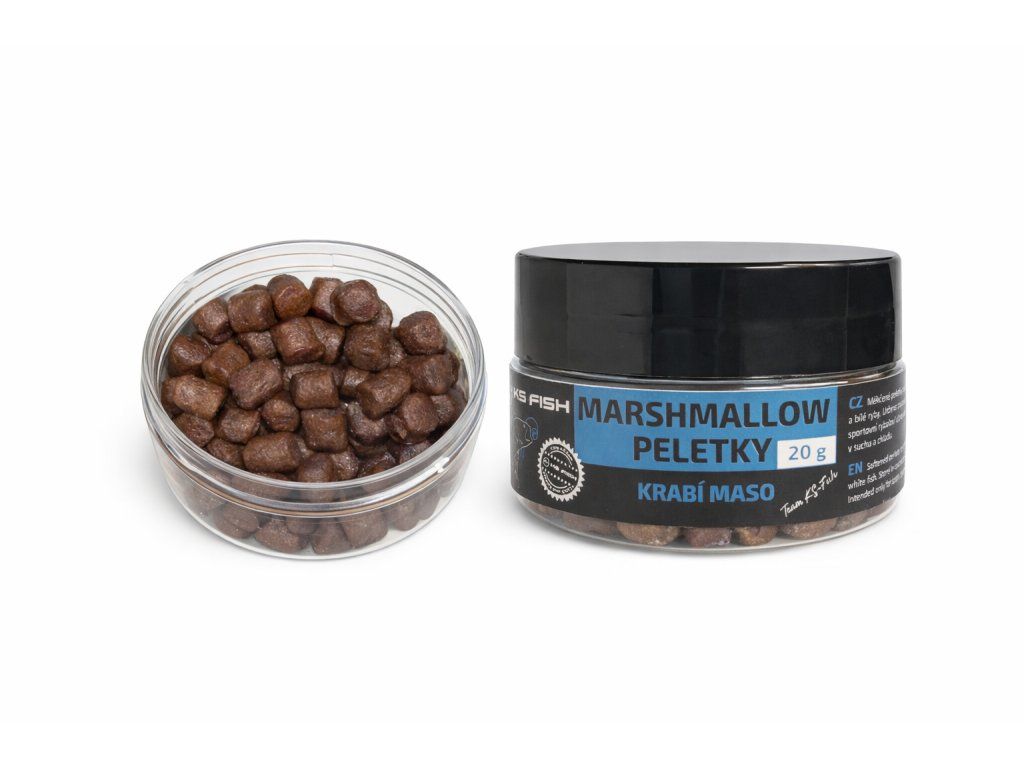 KS Fish Marshmallow peletky jsou speciální měkčené nástrahy určené pro rychlý a efektivní lov kaprů a bílé ryby. Díky své struktuře „marshmallow“ jsou lehce nadlehčené, což zajišťuje přirozenou prezentaci nástrahy nad dnem.