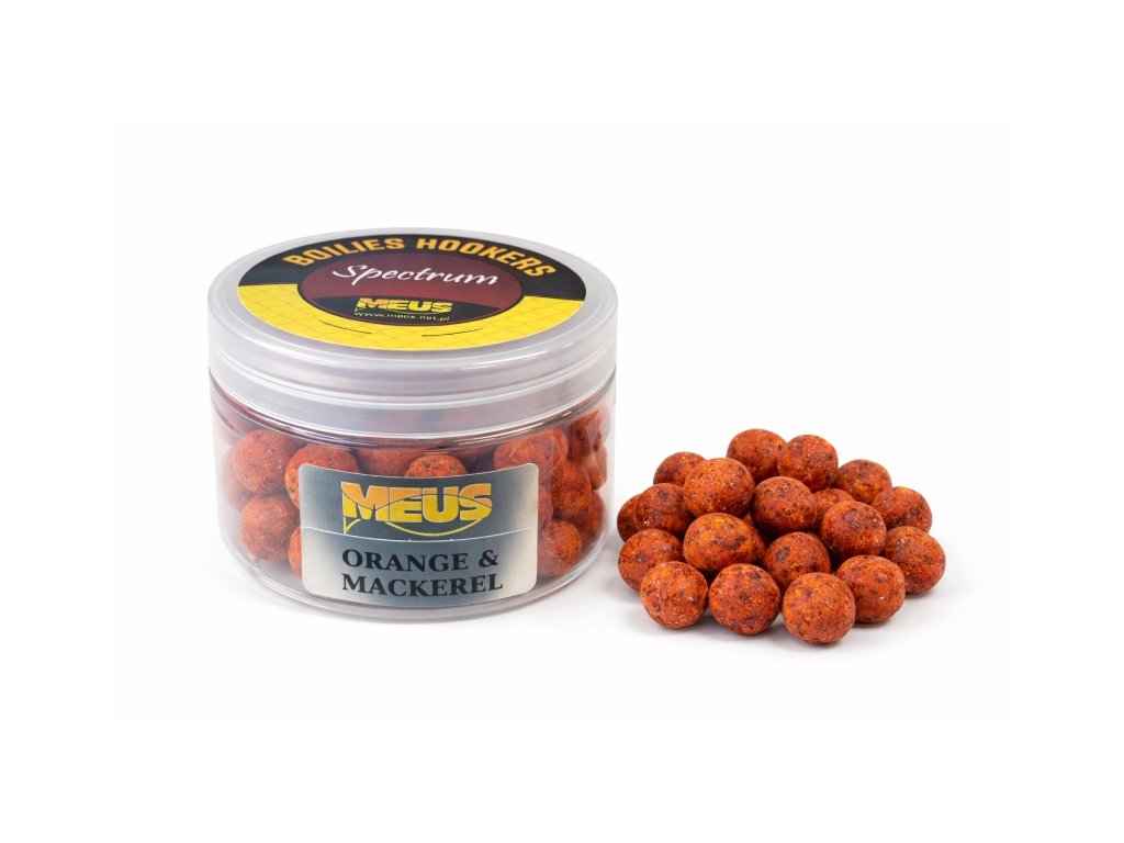 Boilies Meus Spectrum Hookers jsou speciálně navržené nástrahy určené především pro nastražení pod háček (hookbaits). Varianta Orange & Mackerel kombinuje výrazné citrusové aroma pomeranče s atraktivní rybí složkou makrely, což vytváří silně lákavou kombinaci pro kapry i další kaprovité ryby.