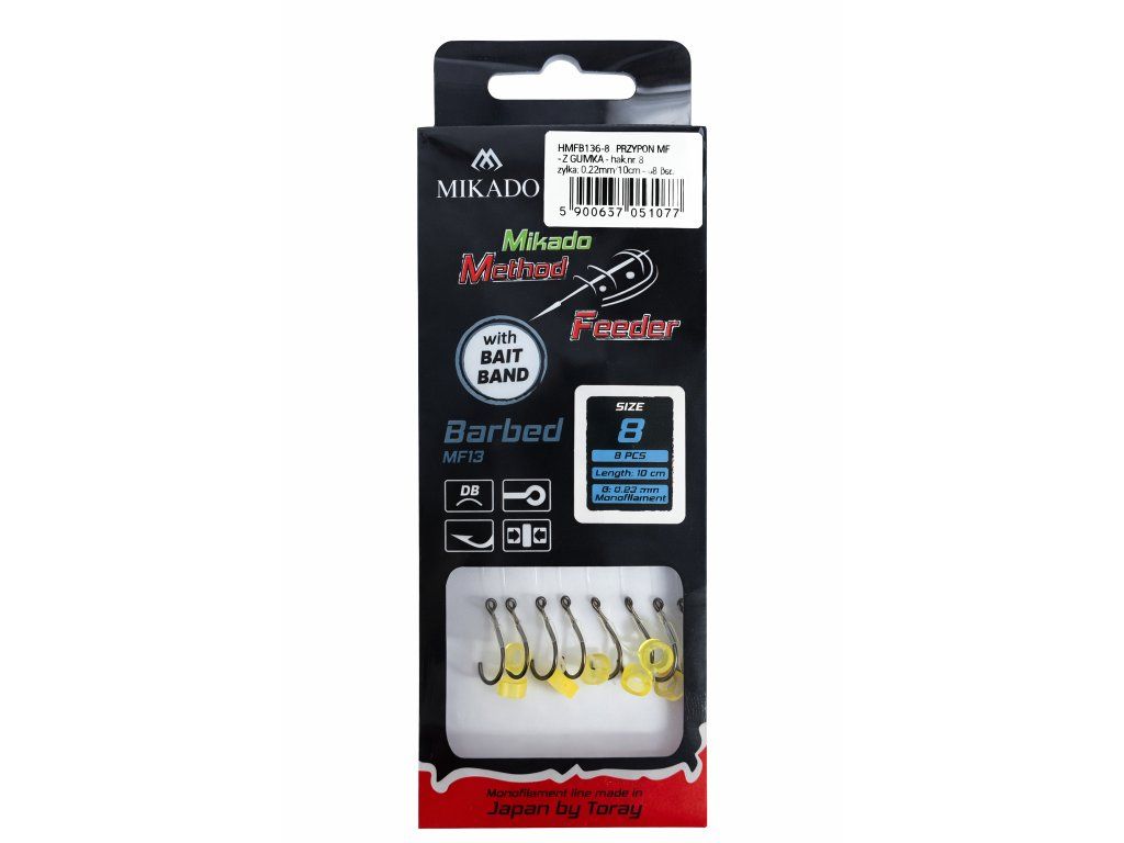Kvalitní hotové návazce značky Mikado určené pro method feeder rybolov. Návazce jsou vybaveny gumičkou (bait band), která umožňuje snadné uchycení pelet bez nutnosti vrtání.