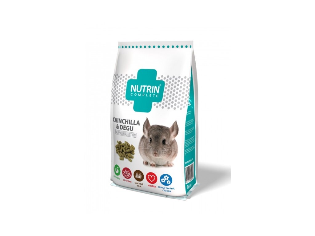 Krmná dávka by se od začátku měla řídit doporučenou denní dávkou krmiva Nutrin Complete Chinchilla & Degu, tedy 4 - 6 g na 100 g tělesné hmotnosti. Denní množství je vhodné rozdělit a podávat ráno a večer. Vždy zajistěte neomezený přístup k senu a čerstvé vodě. V případě, že zvíře pravidelně nekonzumuje vše nebo není pozorován úbytek sena, je vhodné denní dávku snížit. Zpestření ve formě zeleného krmiva, čerstvého ovoce, zeleniny a ohryzu je možné. Veškeré změny, týkající se krmné dávky, by měly být prováděny s ohledem na tělesnou hmotnost, kondici a zdravotní stav jedince.