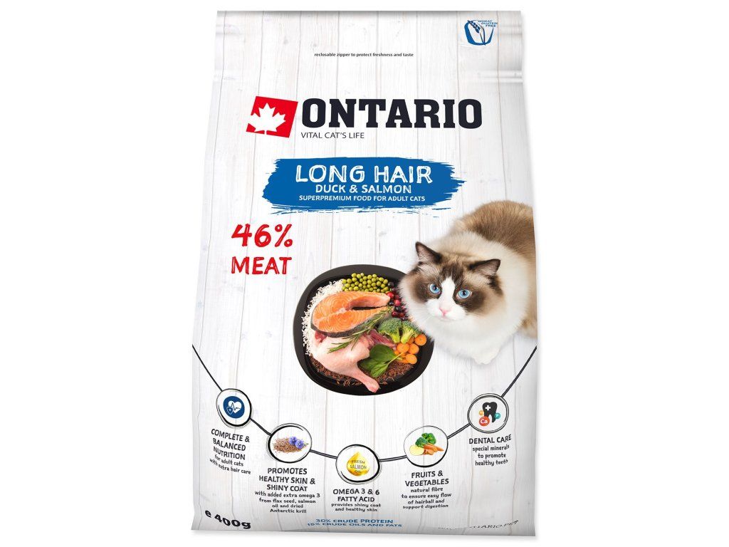 Vysoce kvalitní, superprémiové krmivo pro dospělé kočky s nízkým obsahem obilovin. Speciálně vyvinutá receptura určená pro dlouhosrsté kočky, má bohatě a nutričně vyvážené složení, které je základním pilířem pro zdravý a dlouhý život. Na prvním místě jsou kvalitní zdroje proteinu z kachního a kuřecího masa, pro zajištění ještě vyšší chutnosti a kvality je přidáváno čerstvé maso z lososa. Pečlivě vybrané sušené ovoce a zelenina dodávají organismu potřebné vitaminy, pomáhají trávení a usnadňují průchod bezoárů. Ale nejen to, s kombinací bylinek a koření, pomáhají chránit buňky díky jejich silným antioxidačním účinkům a tím organismus chránit před nemocemi. Krmivo podporuje kvalitu a lesk srsti přidáním extra omega 3 mastných kyselin, které jsou obsaženy ve lněném semínku, lososovém oleji a antarktickém krilu. O ústní dutinu se starají speciální minerály, které přispívají zdraví zubů.