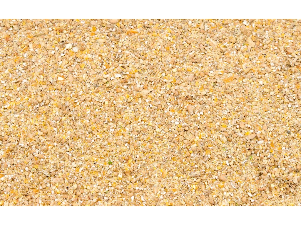- Kukuřičná krupice, sójový extrahovaný šrot, pšenice, ječné kroupy, proso, uhličitan vápenatý, dihydrogenfofsorečnan vápantý, chlorid sodný, hydrogenuhličitan sodný.