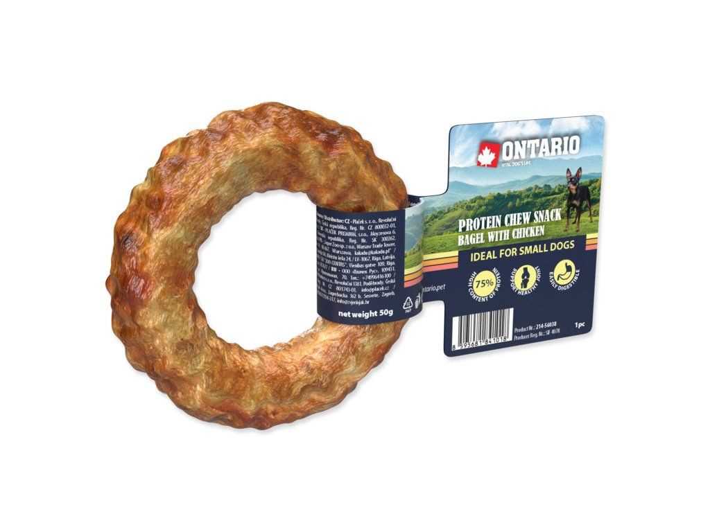Dopřejte svému psu zábavu v moderním stylu. Ontario Protein kuřecí bagel kombinuje oblíbenou drůbeží chuť s hravým tvarem kolečka. Tento pamlsek pomáhá masírovat dásně a zpevňovat čelist. Díky tvaru kolečka vydrží pejskovi ještě déle. Obsažený kolagen se postará o to, aby vazy a klouby vašeho psa byly připraveny na každý společný běh nebo hru.