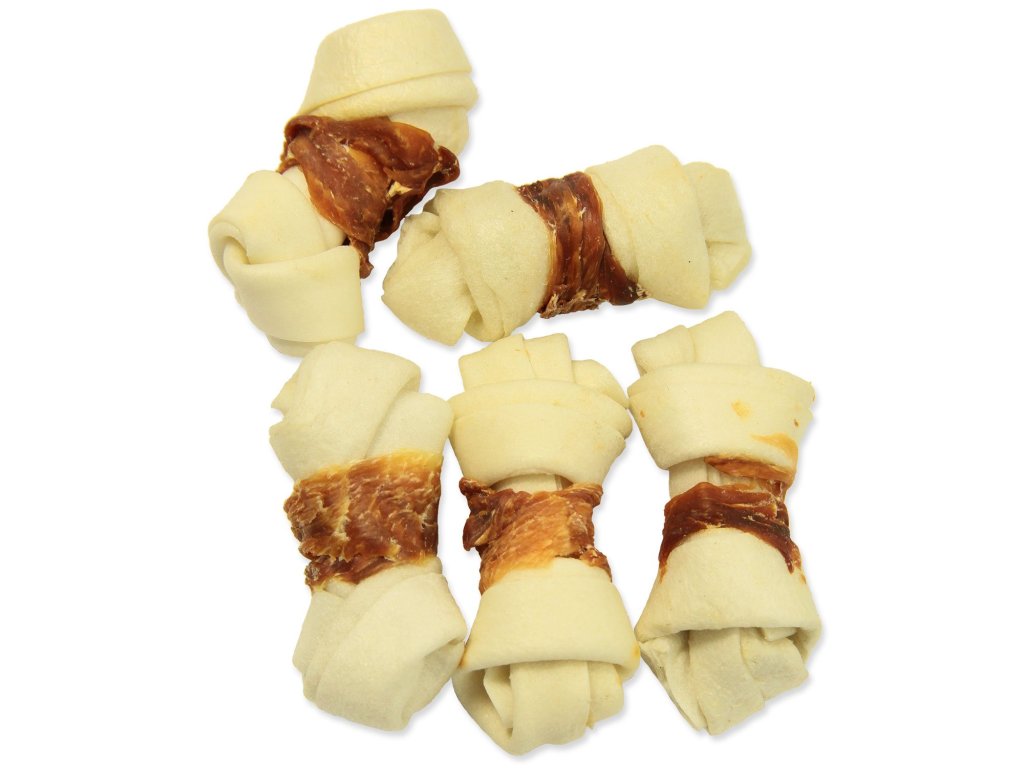 Pochoutka Rasco Premium buvolí kůže obalená kuřecím, uzly 6cm 80g