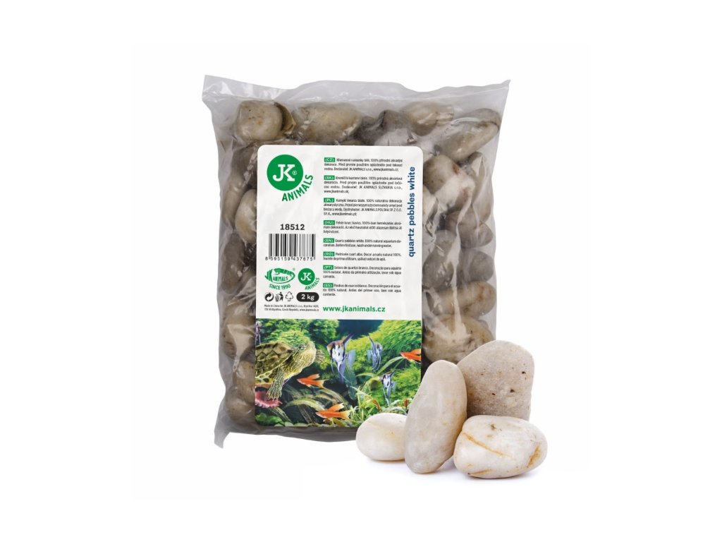 Přírodní křemenné valounky bílé do akvárií a terárií. Balení 2 kg. Frakce 30–50 mm. 100% přírodní akvarijní nebo terarijní dekorace.