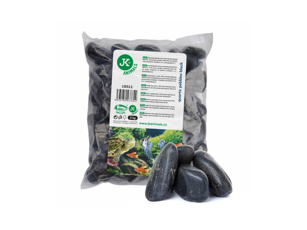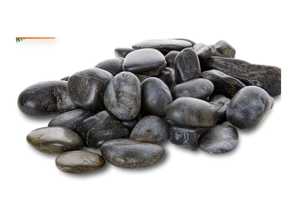 Přírodní křemenné valounky černé do akvárií a terárií. Balení 2 kg. Frakce 30–50 mm. 100% přírodní akvarijní nebo terarijní dekorace.