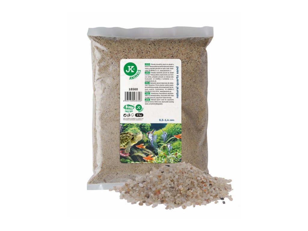 Přírodní křemičitý písek do akvárií a terárií. Balení 2 kg. Frakce 0,3–1,4 mm.