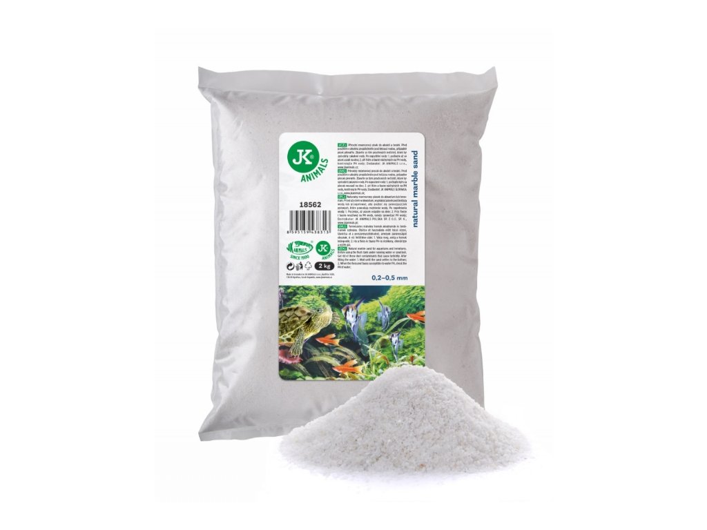 Přírodní mramorový písek do akvárií a terárií. Balení 2 kg. Frakce 0,2–0,5 mm.