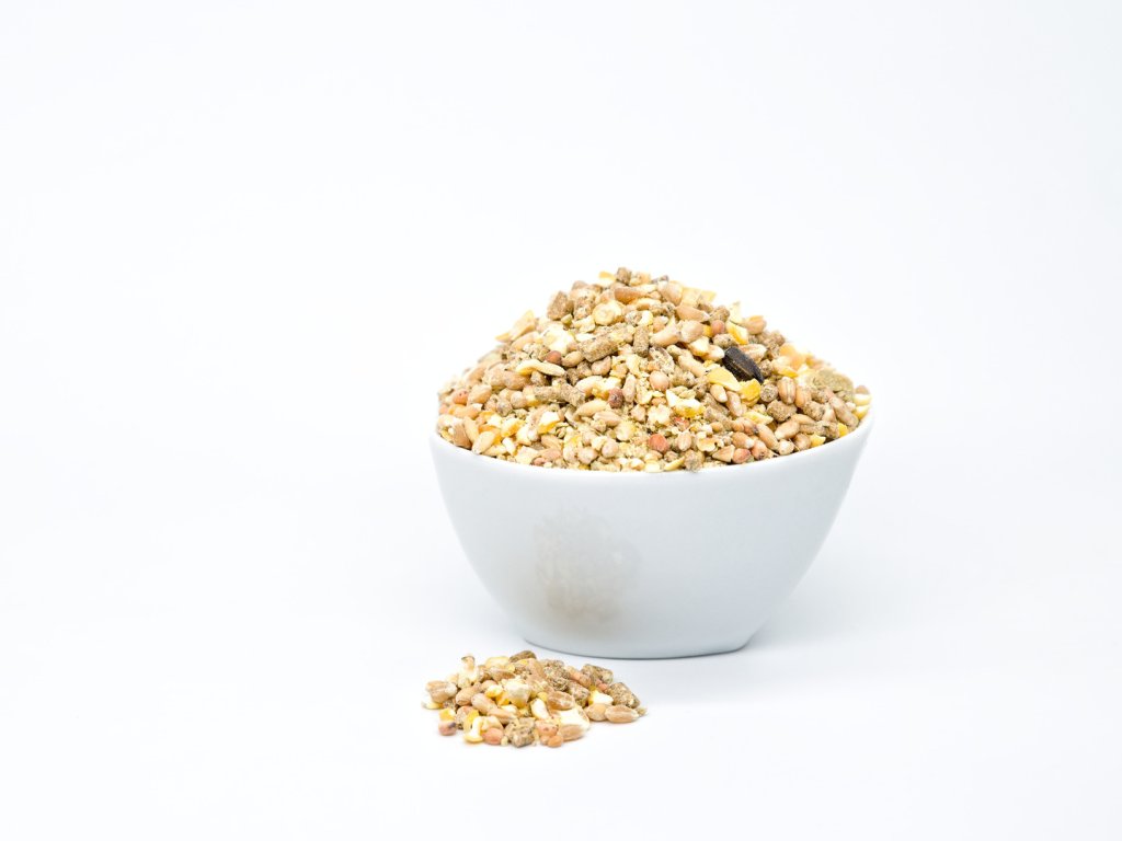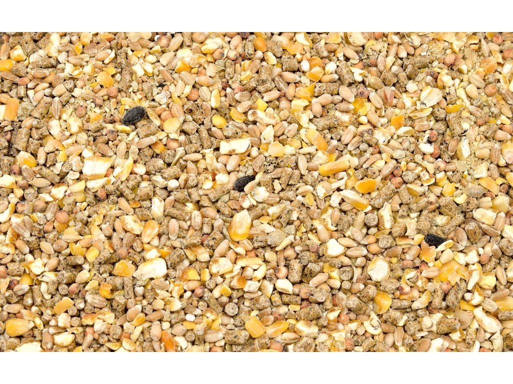 Kukuřičná krupice, pšenice extra tříděná, sójový šrot bez GMO, granulát Vita Pasz, ječmen extra krátký, čirok extra tříděný, světlice barvířská, uhličitan vápenatý, mix pro nosnice