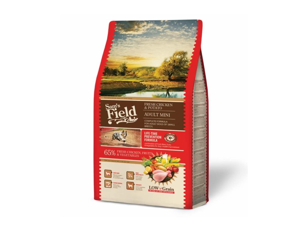 Sam's Field Low Grain Adult Mini Chicken & Potato, superprémiové granule pro dospělé psy všech mini a malých plemen, 2,5 kg (Sams Field bez pšenice)
