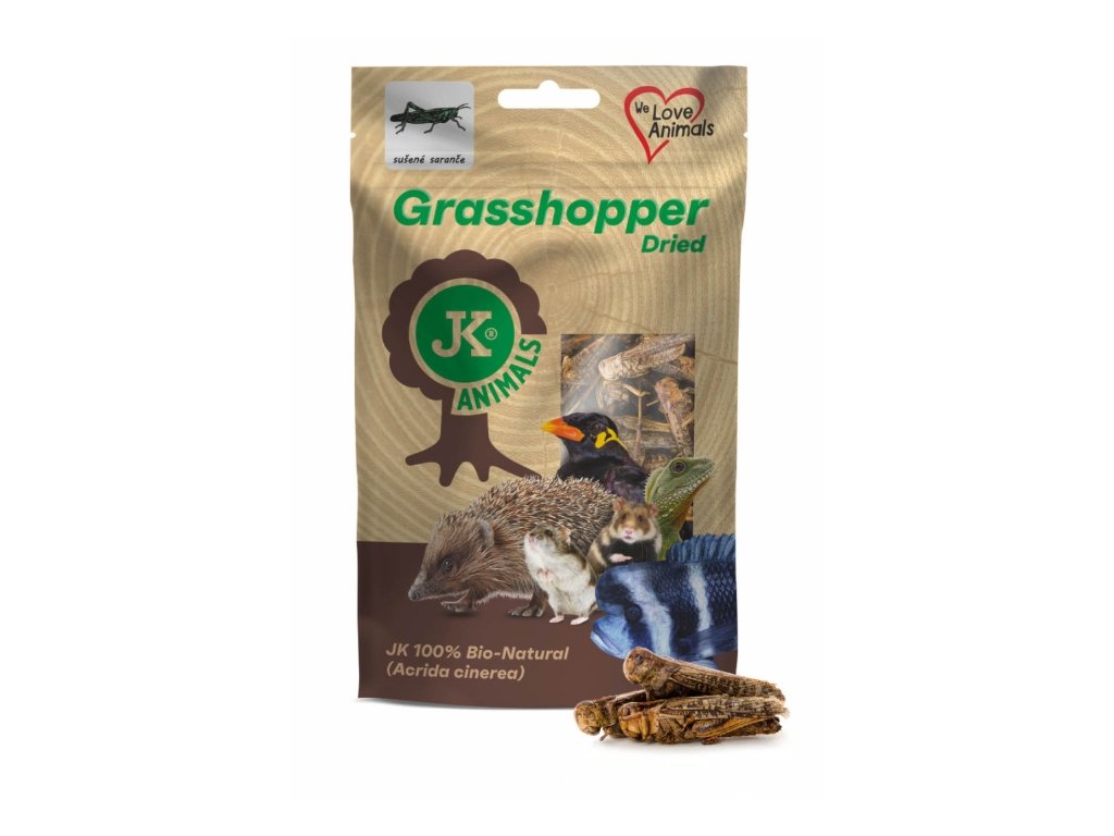 Sušené saranče. 100% Bio-přírodní doplňkové krmivo s vysokým obsahem bílkovin pro plazy, malé savce, ryby, ptáky a drůbež. Bez umělých přísad a barviv.