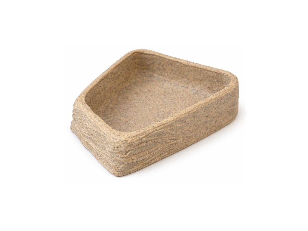 Terarijní miska s realistickým vzhledem opracovaného kamene je praktickým a estetickým doplňkem každého terária. Díky neutrální přírodní barvě snadno zapadne do pouštního, stepního i tropického prostředí.