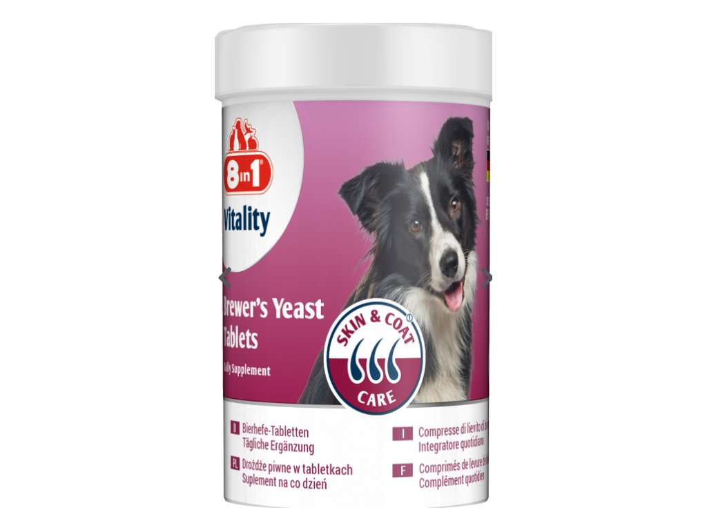 Tablety 8v1 Brewer's Yeast jsou perfektní jako denní doplněk a pomáhají podporovat zdravou pokožku a lesklou srst. Jsou bohaté na vitamíny B-komplex, česnek, omega-3 mastné kyseliny a speciálně vyvážené vitamíny a minerály. Vyvinuto ve spolupráci s veterináři, 8v1 Tablety pivovarské kvasnice neobsahují umělá barviva a konzervační látky. Oni jsou perfektní doplněk stravy vašeho psa. Tento kvalitní doplněk stravy je vyroben v Německu.