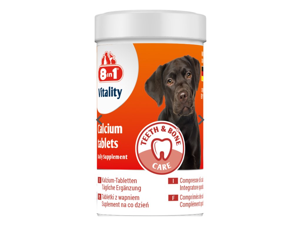 Tablety vápníku 8v1 jsou perfektní jako denní doplněk pro podporu silných kostí a zdravé zuby. Obsahují vápník a fosfor a jsou obohaceny o Vitamin D3, který umožňuje optimální vstřebávání vápníku. Vyvinutý s veterináři, 8v1 Calcium tablety jsou vhodné pro všechny psy, zejména pro štěňata. Neobsahují žádná umělá barviva ani konzervační látky a jsou vyrobeny v Německu.
